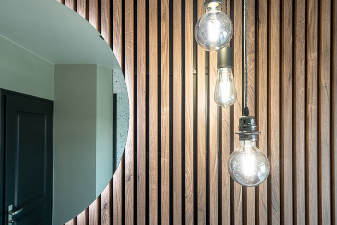 La salle de bain, de son côté, propose une ambiance zen et élégante, portée par des matériaux nobles et expressifs, comme le bois du Lynes Maestro et le carrelage Terrazzo. L’ensemble des pièces a été rénové pour favoriser la lumière naturelle et agrandir visuellement les volumes, créant une atmosphère accueillante et contemporaine.
